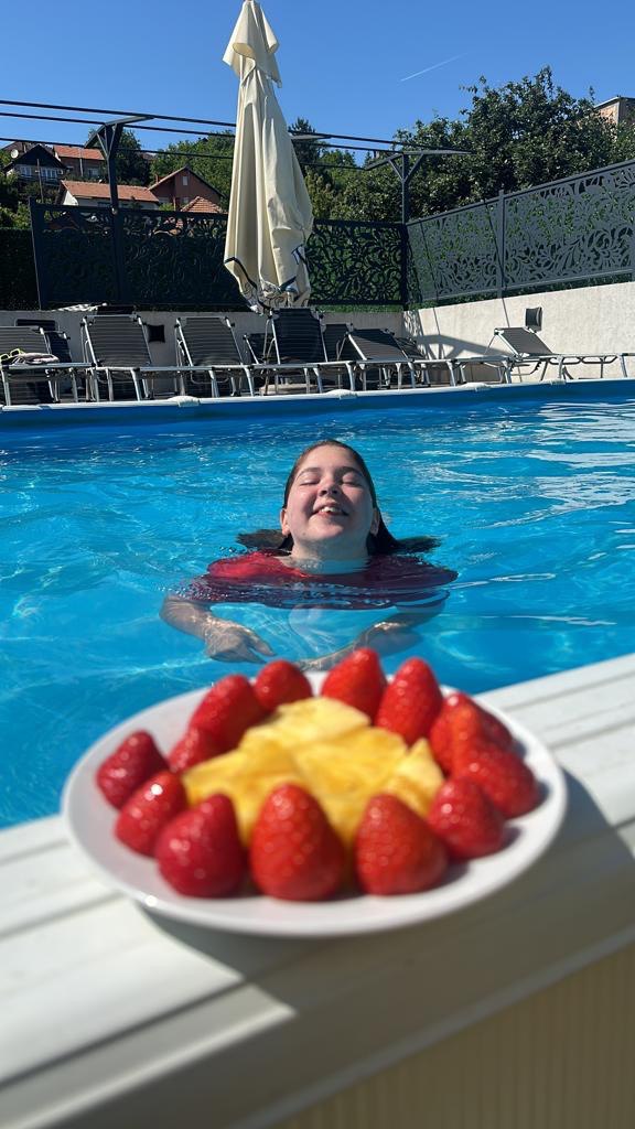 Gosti našeg hotela, kao i eksterni gosti (na dnevnu kartu), mogu da koriste bazen, koji radi sezonski u periodu od 1 juna do 30 septembra. U zoni odmora pored bazena nalazi se roštilj, suncobrani i mesta za vaše opuštanje. Pružamo mogućnost zakupa celog bazena i zone odmora oko njega za proslavu, porodično ili korporativno okupljanje.